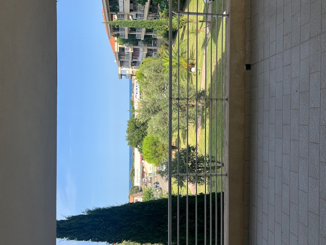 Grande terrasse donnant sur parc avec vue degagee sur mer, cave et parking privatif.