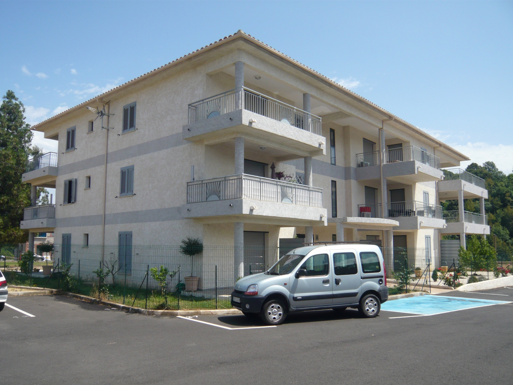 Résidence U Bene Sta. Appartement traversant est/ouest, de type 3 dans une résidence récente. climatisation dans séjour/cuisine, .S.H. 71m² comprenant un séjour - cuisine aménagée, deux chambres avec placards muraux, une salle d'eau, un WC, un dégagement avec placard mural. Deux terrasses pour un total de 40m².